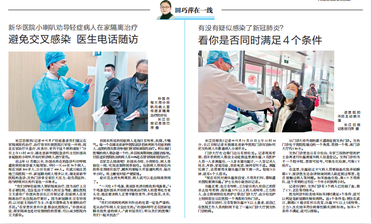 田巧萍为自己的采访发现激动不已,一直在一线的她太了解这一方法的重要价值。彼时的武汉,由于缺乏专业医生为社区居民做必要的专业指导,以至于一些轻症病人,包括无法入院的病人,要么只是待在家里,而没有采取一人一屋、避免接触等措施,导致了家庭内感染,要么无助地涌向医院,导致了院内感染。田巧萍迅速写出了这篇报道,为当时武汉市展开居家隔离的治疗和管理奠定了一定的舆论基础。该文发出后,点击量达千万。