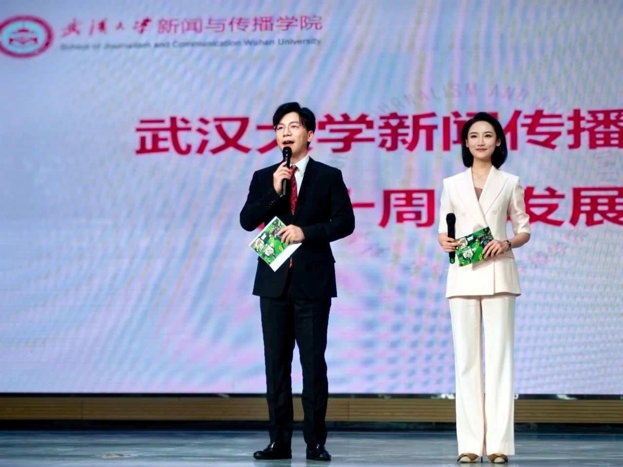 此次大会由陈铭(2005级)与孔钰钦(2010级)主持,两位主持人凭借敏锐而真挚的感受力和出色的口语表达能力,既保证大会现场秩序井然,同时也使得气氛生动有趣,还留下了许多掷地有声的“金句”。进入大会尾声时,两位主持人将新闻比作“河流”,“在座所有我们曾经的人、今天的人和之后即将进入这条河流的人,他们用自己的肩膀、胸怀和对这个世界温暖的感知,对于规律的发掘和探寻推动着这条河流不断向前”。“我们也非常荣幸身处在这条大河当中,是其中的一份子、一朵浪花,我们也再次祝福这条名叫新闻、名叫理想的河流,奔腾不息!”